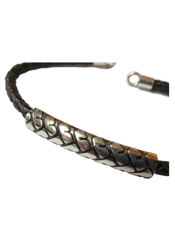 Se completa con cuero trenzado en color rojo, negro, azul o marrón.